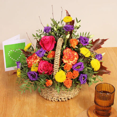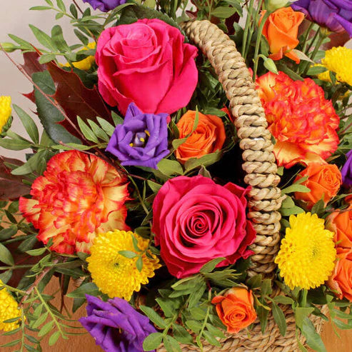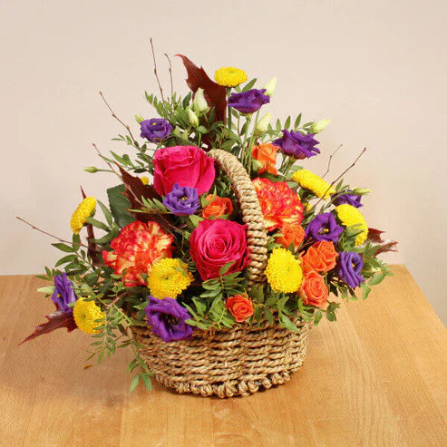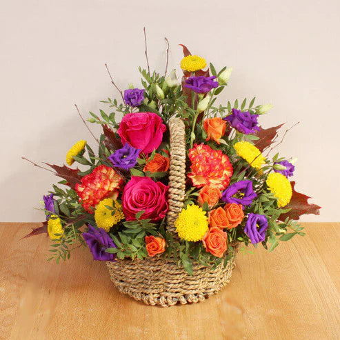 Our Autumn Brights arrangement features striking seasonal flowers that will uplift your spirit. A beautiful basket of bright Winter blooms that will bring happiness and warmth during the cooler seasons.