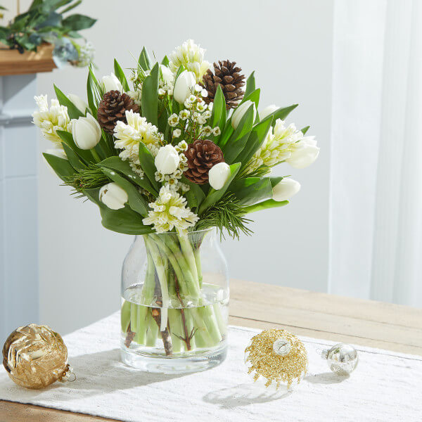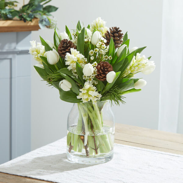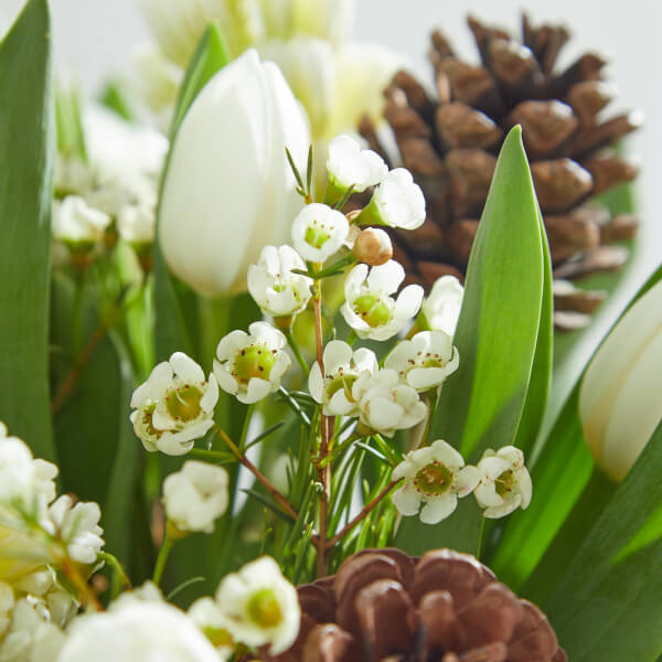 Christmas Star features a clean shape against the intriguing textures of pine and pinecones. An elegant way to welcome winter festivities, this bouquet is an excellent gift for someone who appreciates simplicity. These will be prepped and packed securely, shipped over night with our partner courier. We cannot deliver this item to Northern Ireland, Isle of Wight, Isle of Man, Channel Islands, Highlands of Scotland and Aberdeen, Jersey, Guernsey, Scilly Isles, Argyll, Shetland.