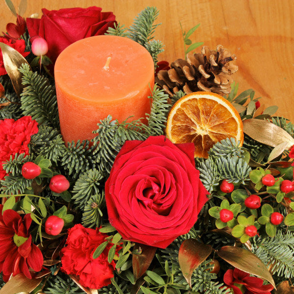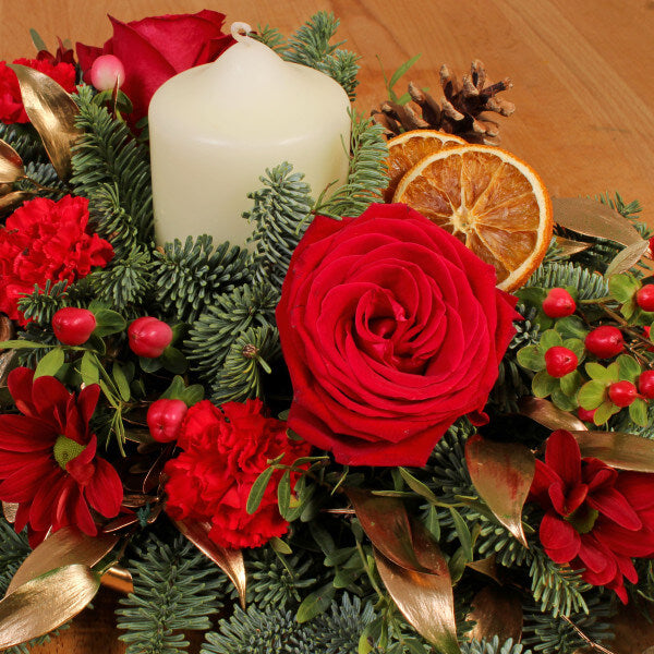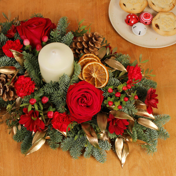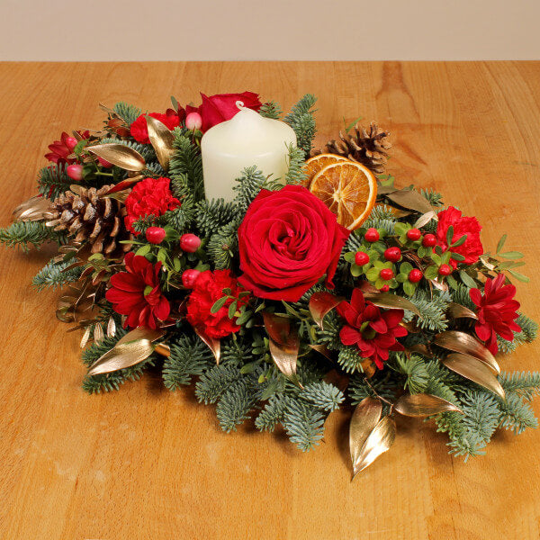 Our Festive Centrepiecea is an enlightening addition to your Christmas dinner table. Create a fashionable setting with this fresh and lovely centrepiece as the main attraction.