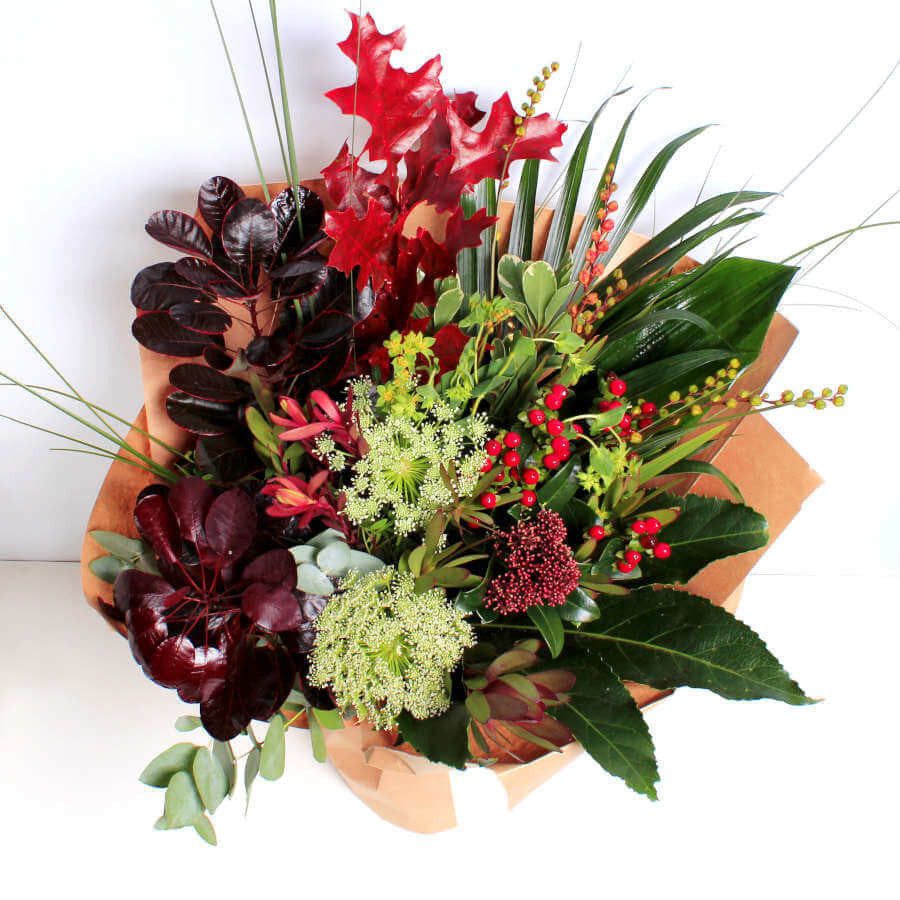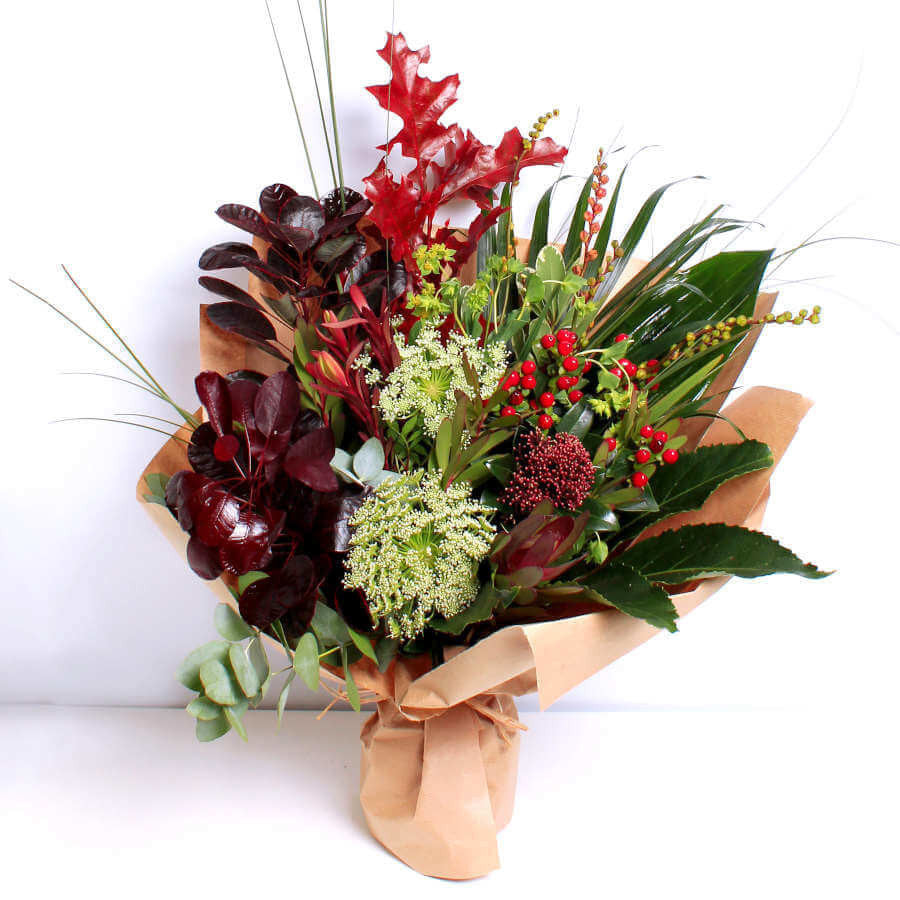 Our Foliage Bouquet is a vintage colour combination of aromatic, hand tied flowers. Each bouquet is handcrafted by our local florists and availble for same day delivery across the UK.