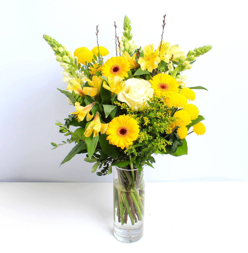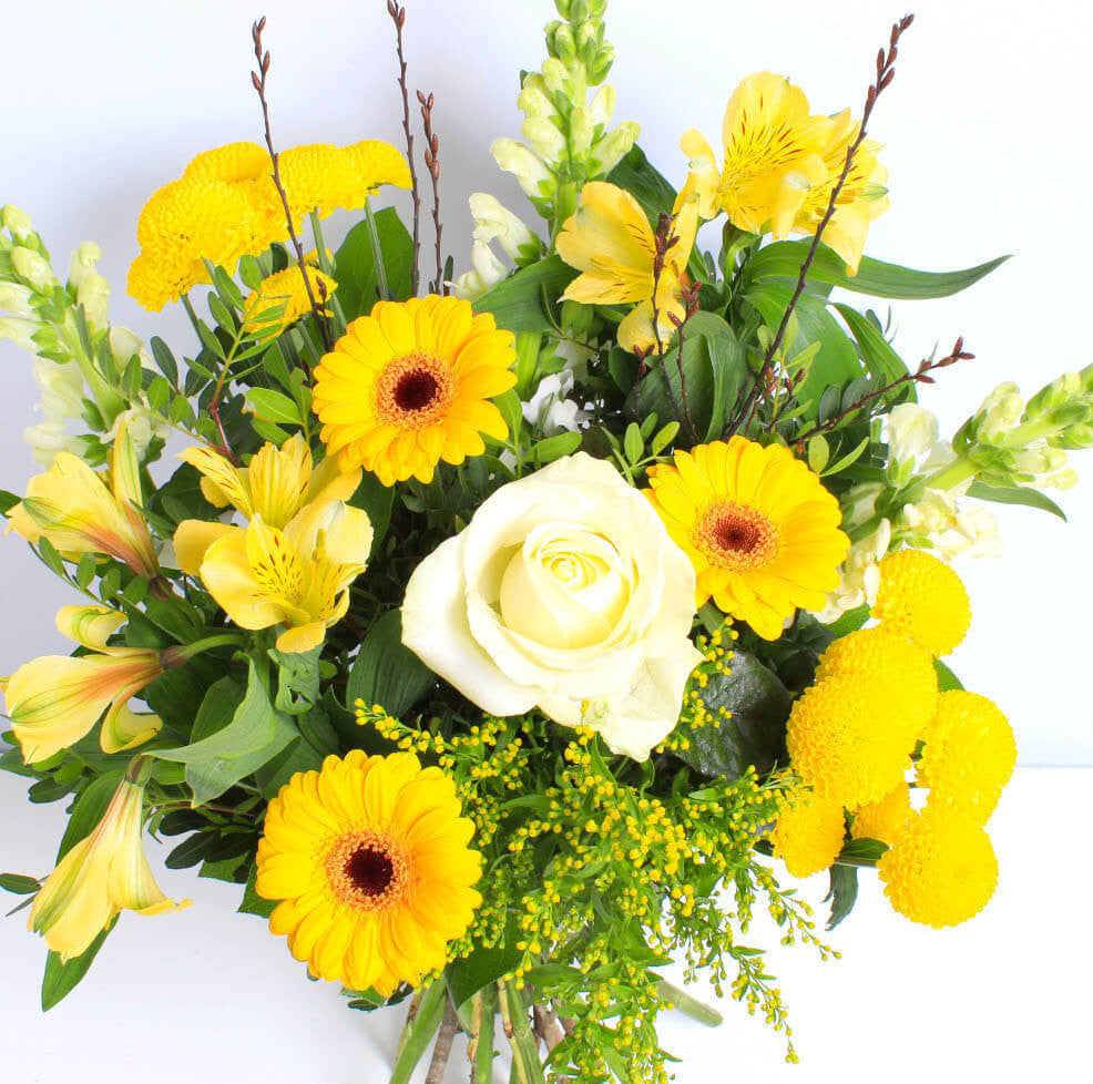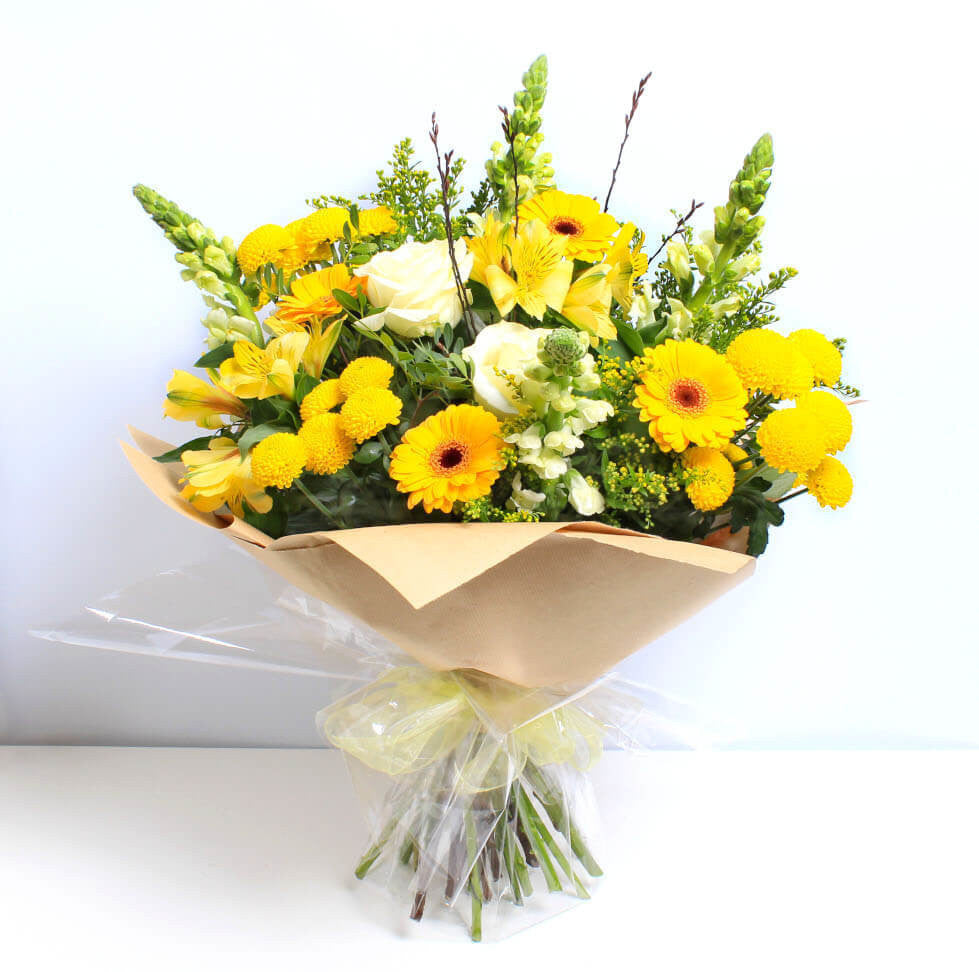 Featuring a stunning combination of Antirhinum, Craspedia, Germini and Roses each Lemon Sizzle bouquet is hand tied by local florists and is a zesty delight!
