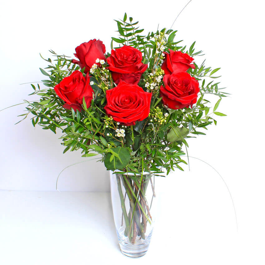 A simple yet ultimately romantic bouquet for the love of your life this Valentine’s Day. Six gorgeous red roses hand tied with care and delivered with love.
