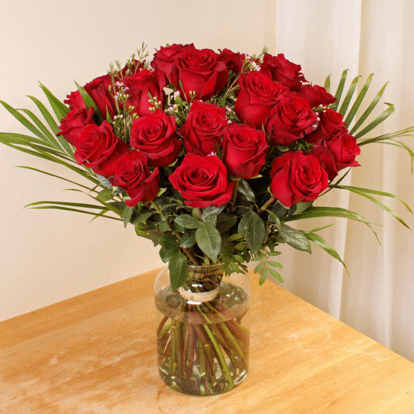 Red roses inspire the romantic in us all, and our Luxury 24 Red Roses are presented in a compact, handcrafted design with a collar of lush foliage. These are the ultimate romantic gesture and the ideal way to express what a full heart has to say. This bouquet will be handcrafted by an experienced florist, and delivered by hand.