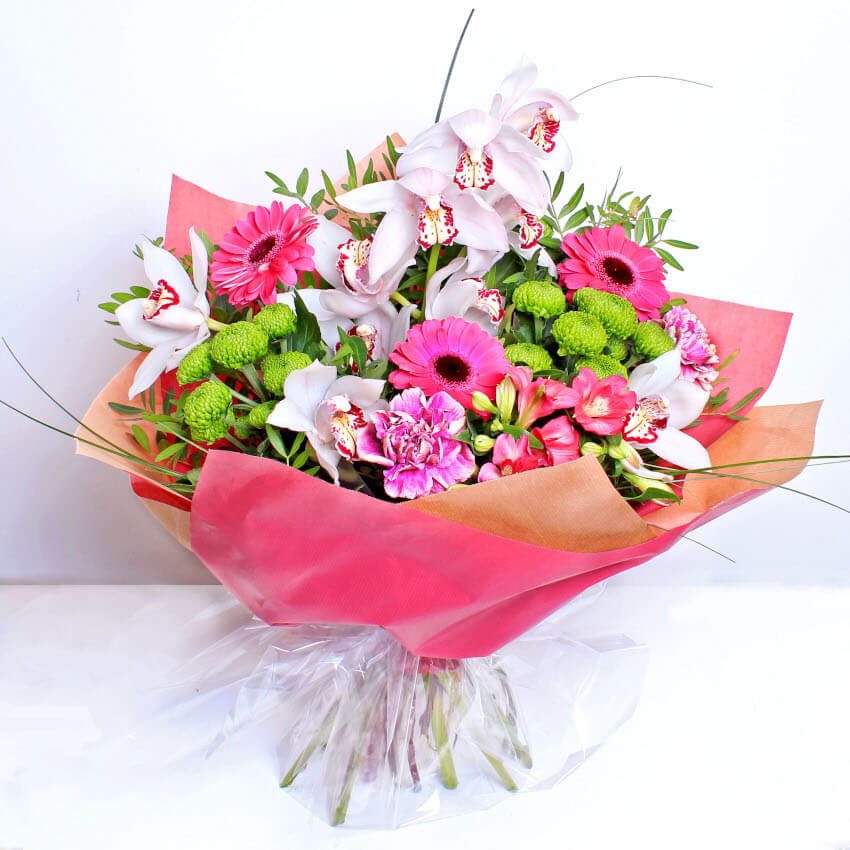 This hand crafted bouquet of fresh, hand cut flowers is a vibrant and colourful combination of ethically sourced, sustainable blooms. The perfect gift for any occassion.