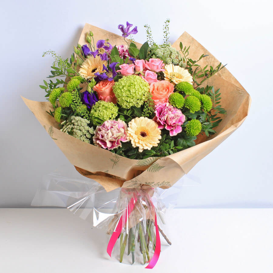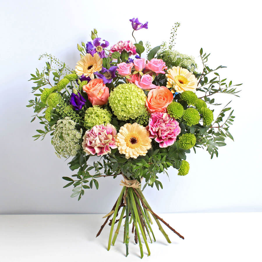 A handcrafted and stunning assortment of Clematis, Germini, Carnation, Chrysanthemum, Dill and Roses that are sustainable, ethically sourced and available for same day delivery