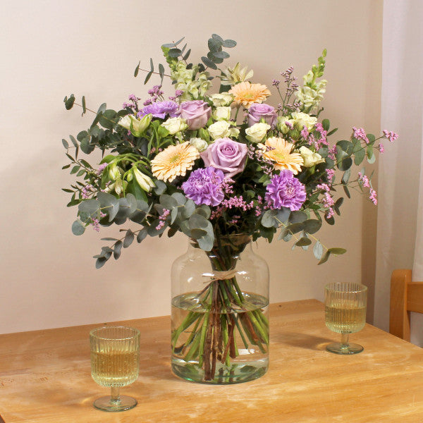 Our local florist handcrafted our Perla bouquet, which features Chrysanthemum, Freesia, and Roses in a gloriously wild theme. This might make a lovely gift for your loved ones and make them smile.