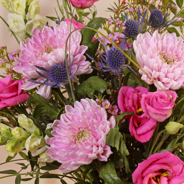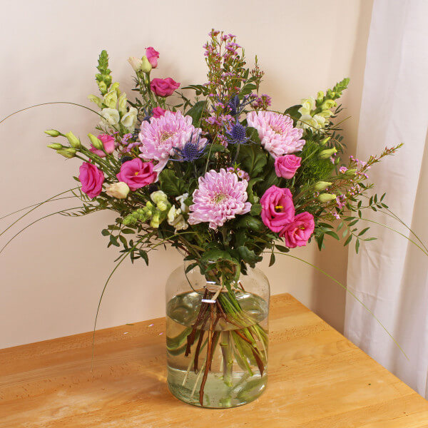 A classic, handcrafted bouquet of Antirhinum, Chrysanthemum and Lisianthus, these beautiful flowers will fill you with awe and make you drop your jaw! Available for same day delivery, these are the ideal last minute Mother's Day gift.