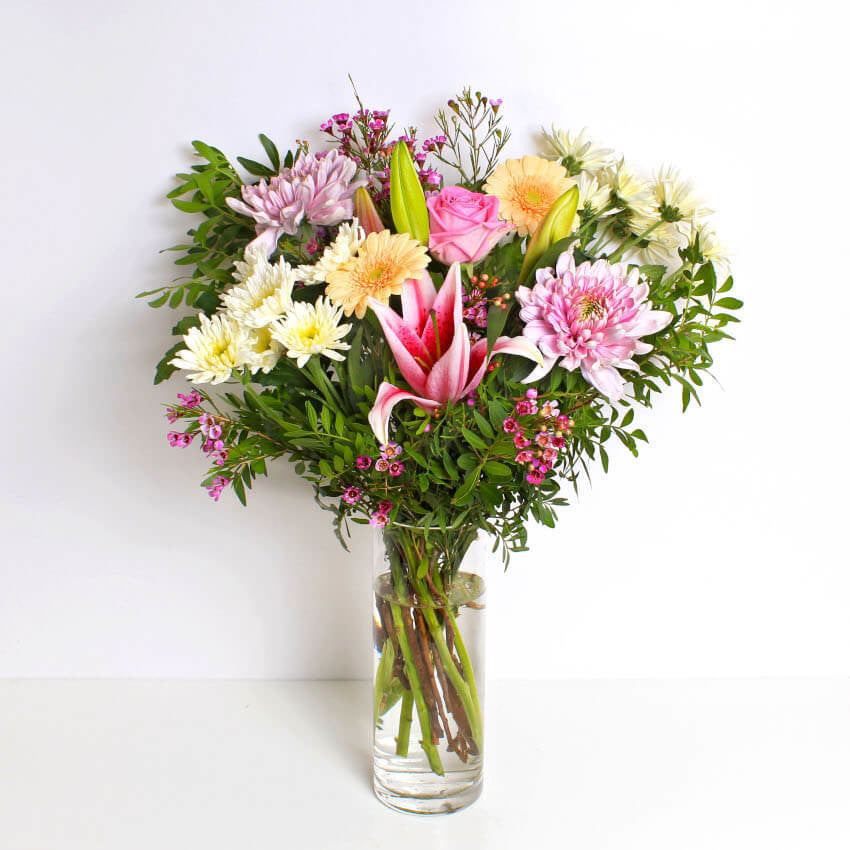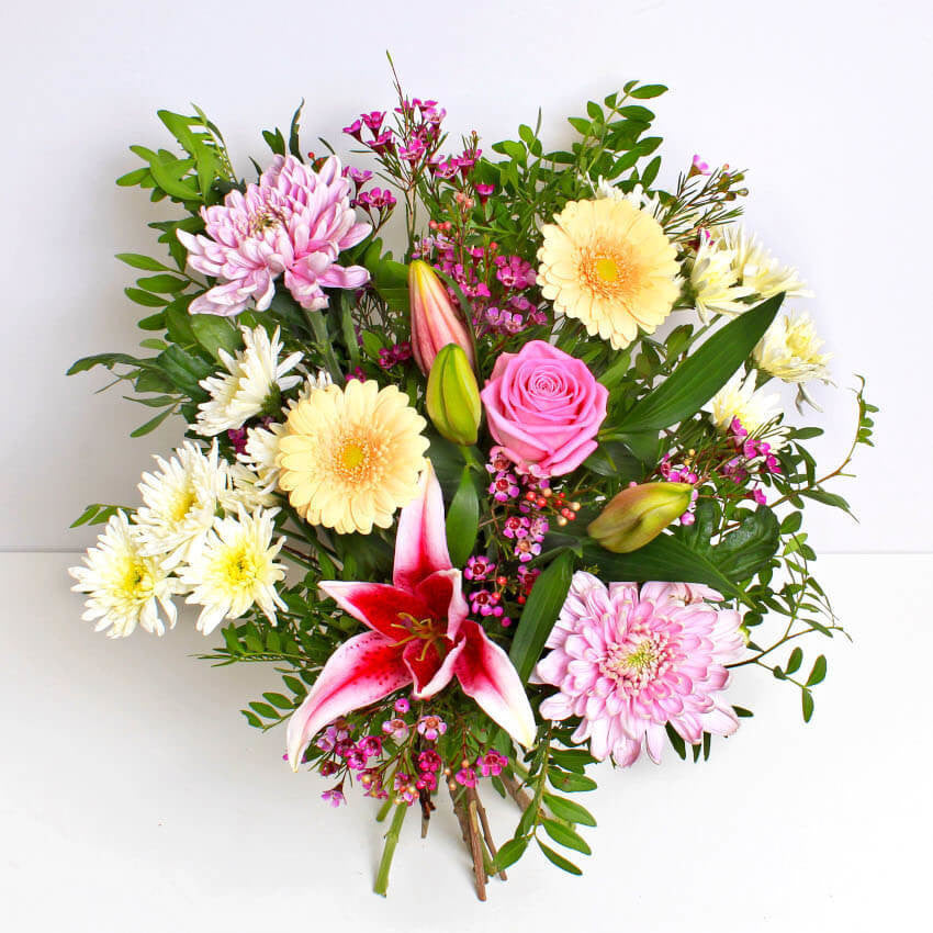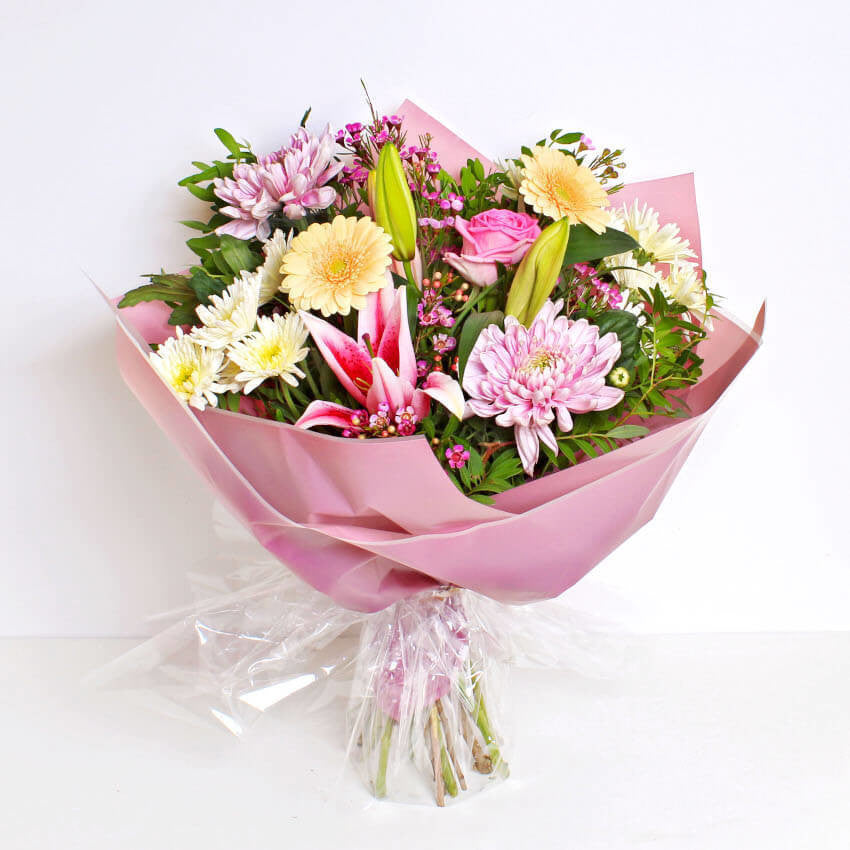 Handcrafted by our skilled local florists, the Remy bouquet is a stunning combination of Germini, Lilies and Roses that are hand cut and have a wonderful aroma. Available for same day delivery and perfect whatever the occassion.
