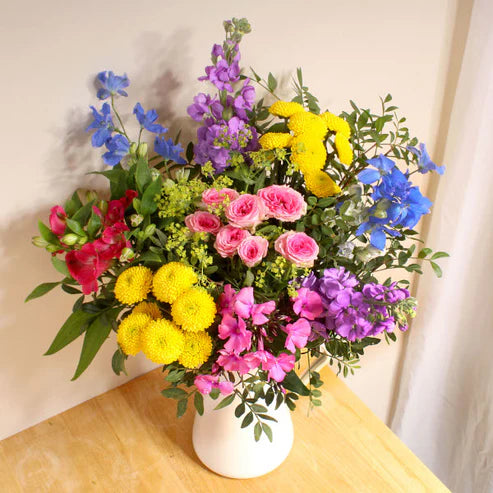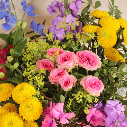 Bring the gardens straight to you with this mix of lilacs, pink roses and pink Alstromerias. Handcrafted by experienced florists, and delivered by hand.