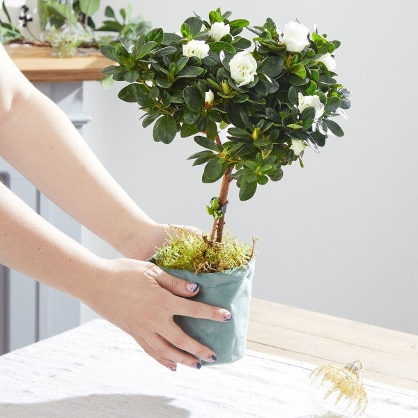 SEND LOVE FROM AFAR The azalea is known to some as the 'Thinking of Home Bush', and has been known to mean 'take care of yourself' so it couldn't be a better present to send to someone this winter who you care deeply about but may live far away. IN THE BOX This eye-catching arrangement contains the following: Azalea white in pot.