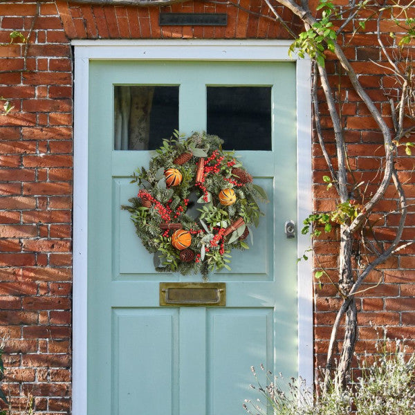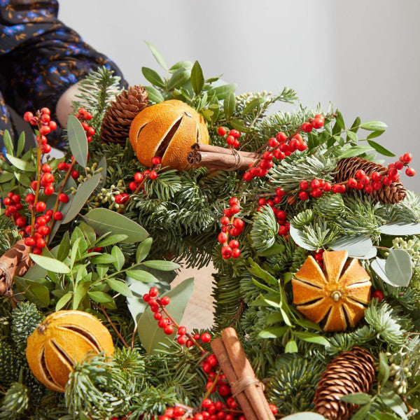 Cheerful colour Add a splash of festive colour to any door with the Berry Bright wreath. Filled with gorgeous winter foliage, vivid berries and fragrant dried orange and cinnamon, this wreath is warm welcome for visitors this season.