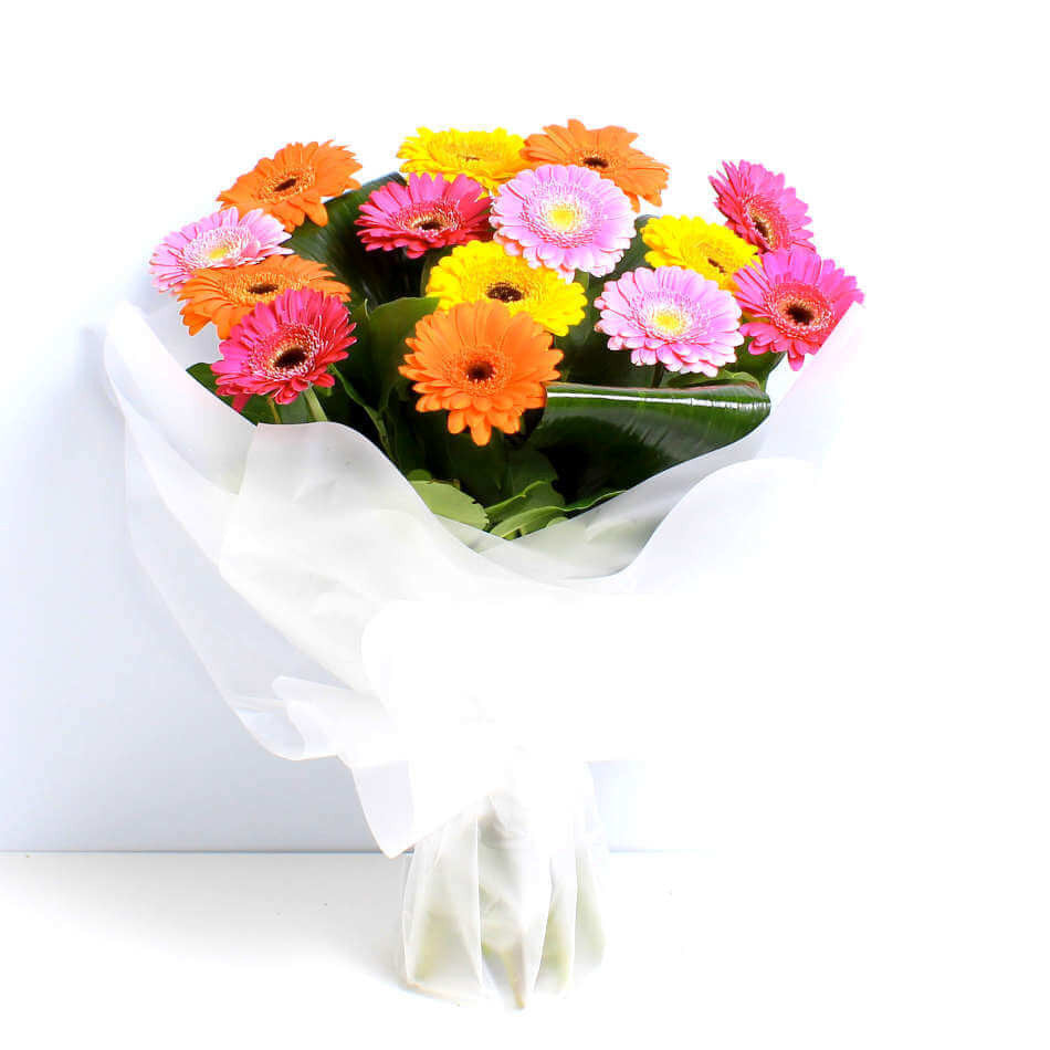 The perfect bouquet for any occassion, this colourful combination of Germini, Lily, Lisianthus and Roses features hand cut, ethically sourced and sustainable flowers. Our handcrafted Vibrant Gemini arrangement is an eye catching way to show you care and adds colour to any interior.