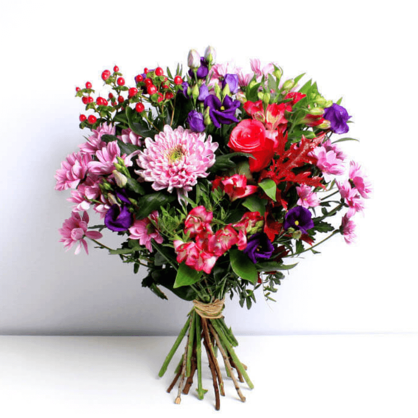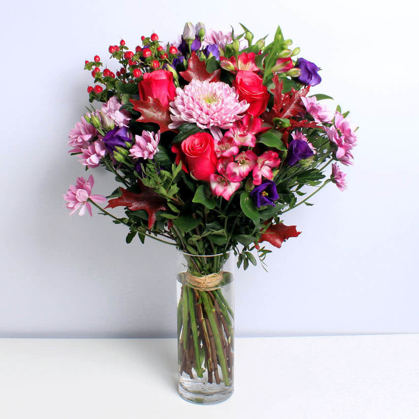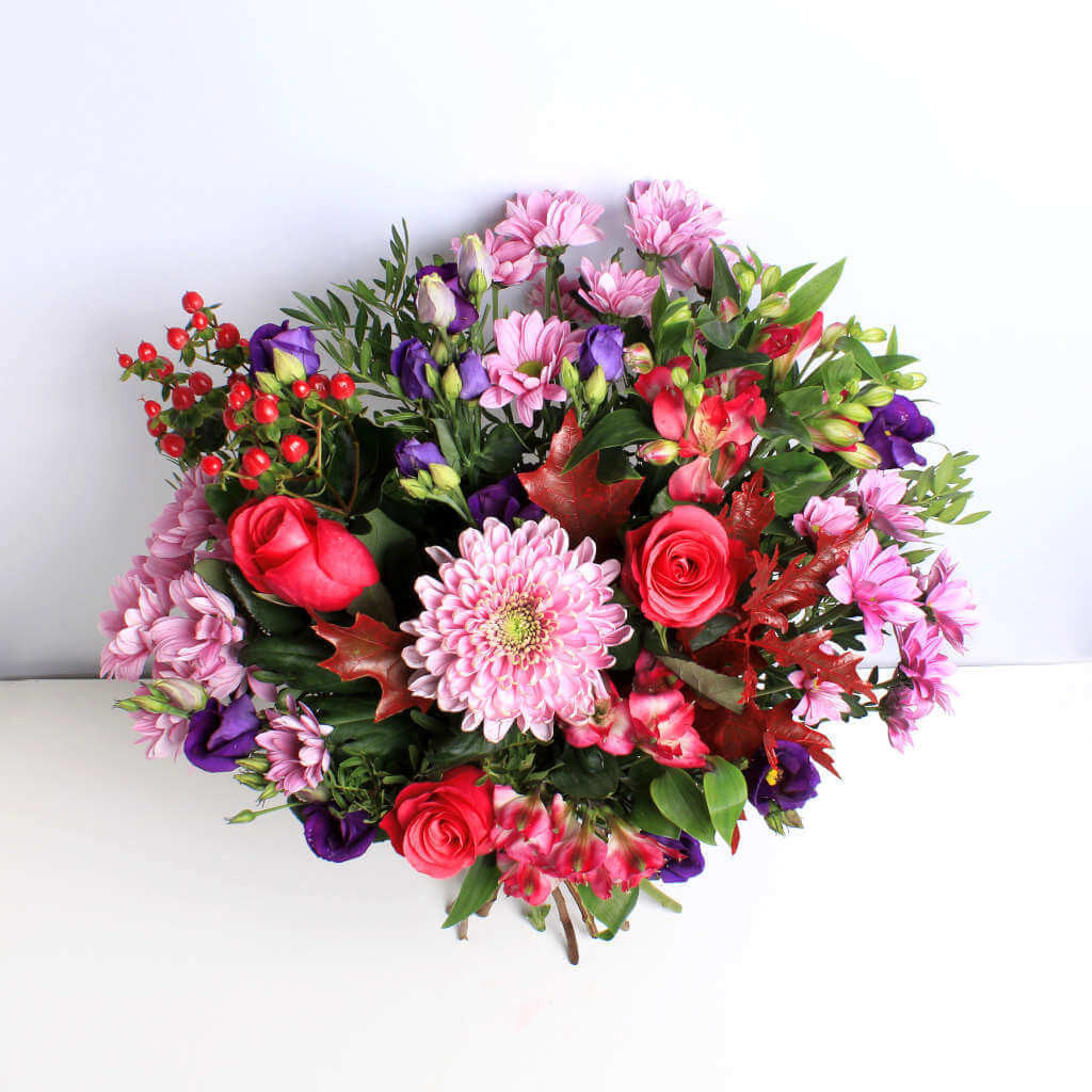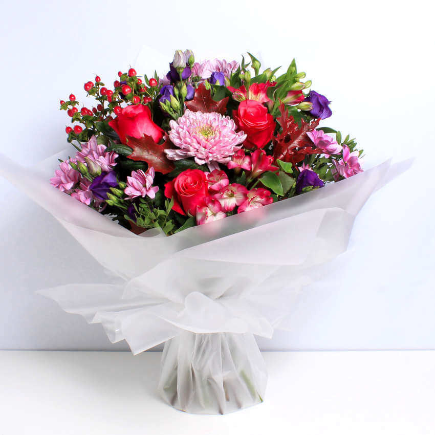 A stunning selection of seasonal flowers, this handcrafted combination of Alstromeria, Chrysanthemum and Roses in rich, deep colours will warm the heart of anyone who receives them. Our ethically sourced, sustainable flowers are guaranteed to brighten any occassion.